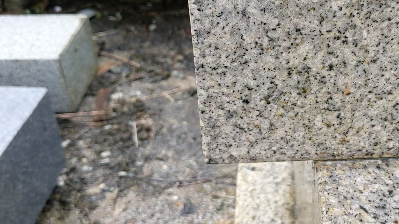 お墓(御影石)の黒ずみ汚れを効果的に落とすソイルスクレープ。